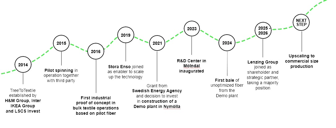 TreeToTextile was established in November 2014 by H&M Group, Inter IKEA Group, and LSCS Invest with the objective of developing a more sustainable process for man-made cellulosic fiber and commercializing the technology and fiber rapidly and widely.